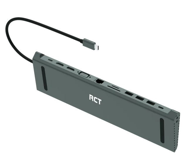 RCT 13-in-1 USB type C dock with MST function;1 HDMI; 1 DP; 1 VGA; 3 USB 3.0; 1 RJ45; PD; 3.5mm audio & mic; SD/TF3.0 reader