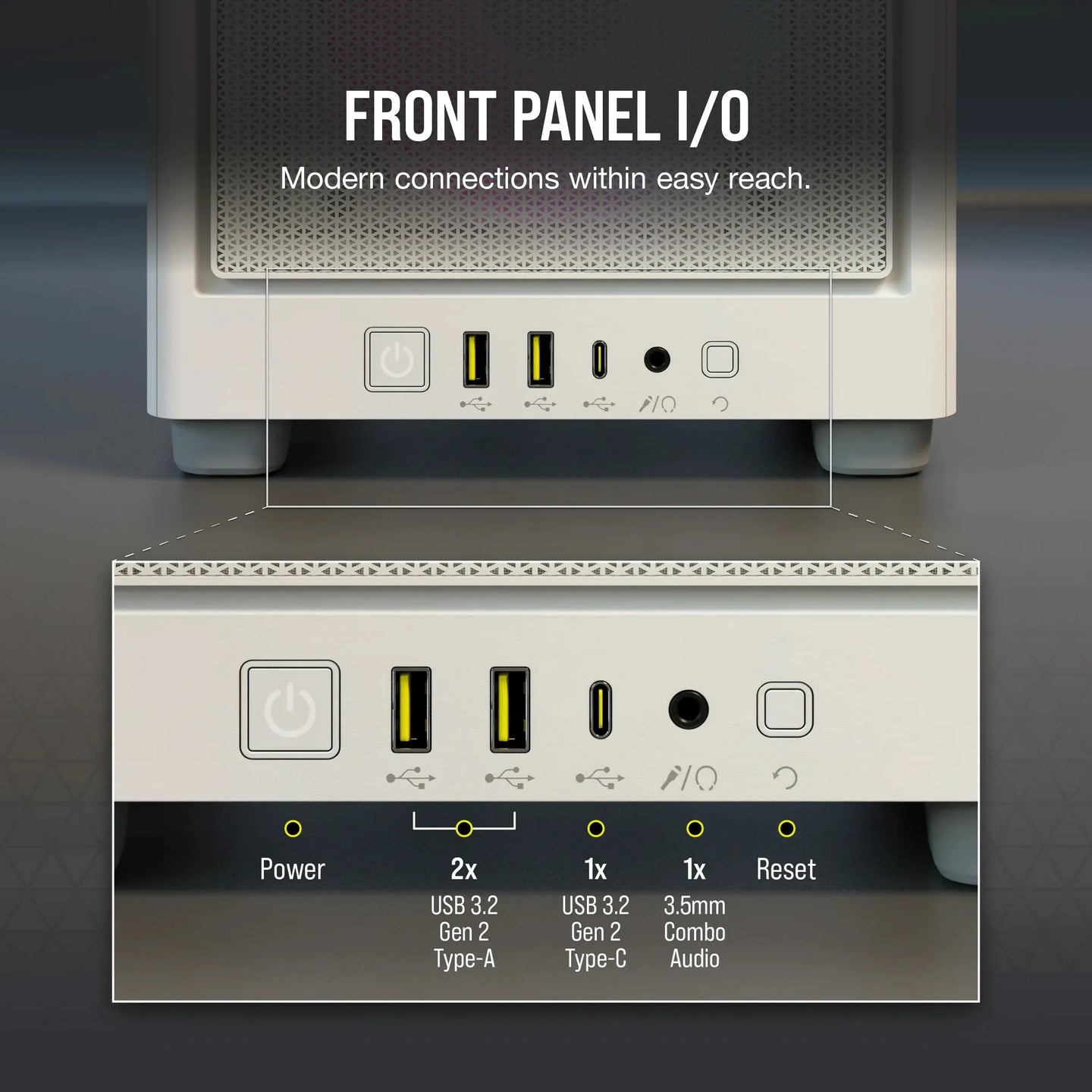 iCUE 2000D RGB AIRFLOW White Mini-ITX PC Case; 3x 2.5'' Drive Bays; Up to 360mm Radiator compatible; 2x 120mm fan incl