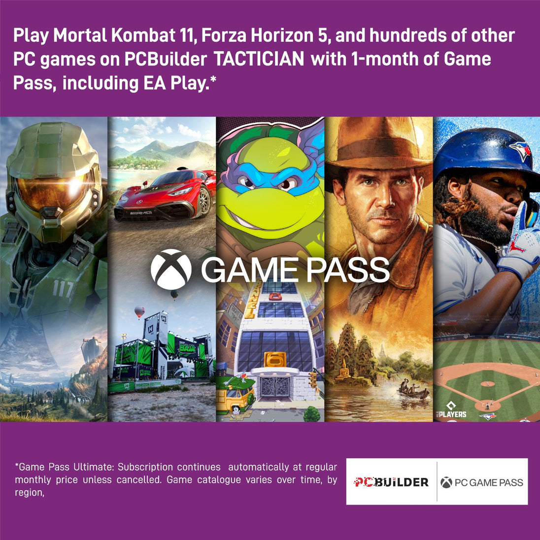 - Play over 100 high-quality PC games like Halo Infinite, Forza Horizon 5 and Teenage Mutant Ninja Turtles: Shredder’s Revenge with your new build and one month of PC Game Pass including EA Play. With new games being added all the time, there’s always something new to play from day one.