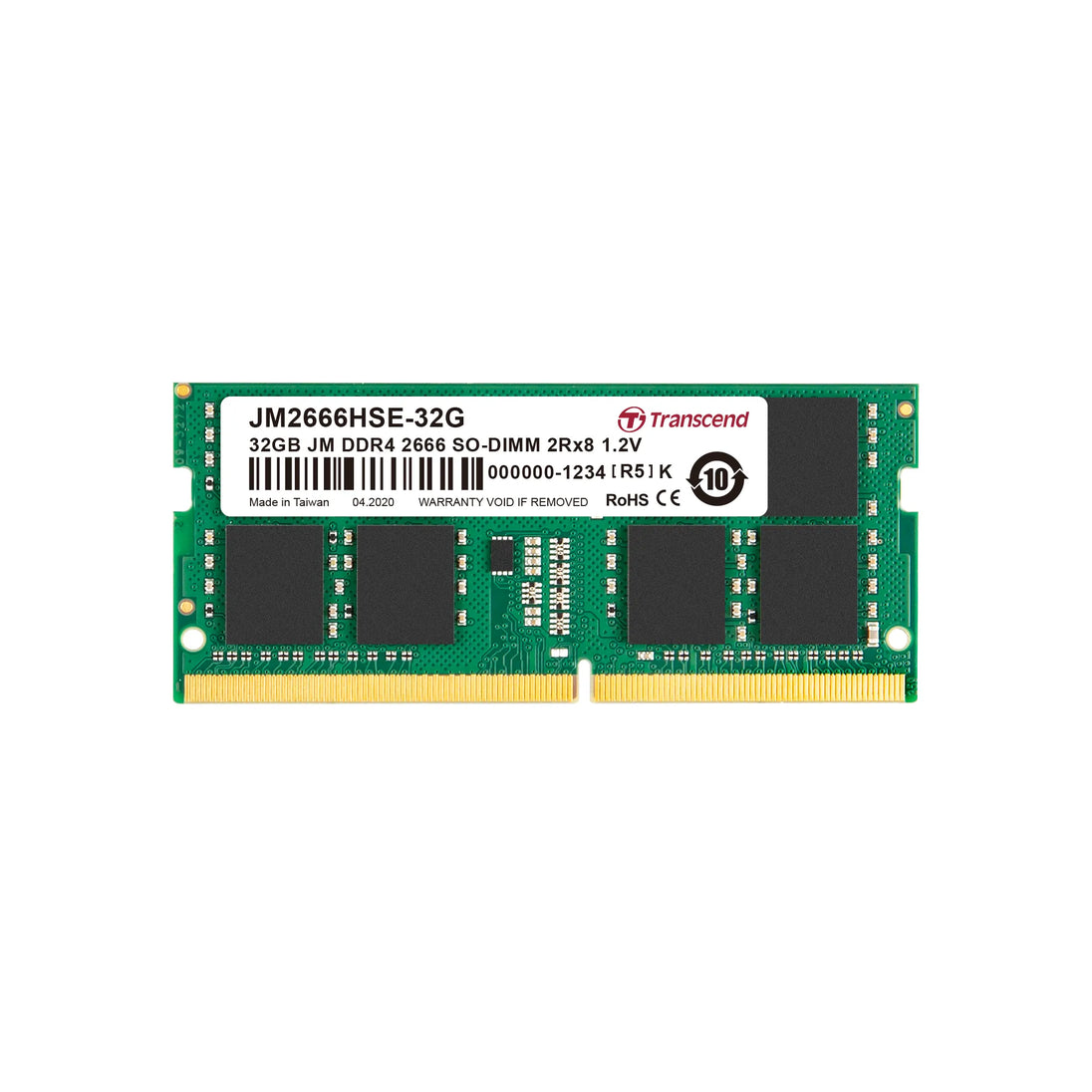 TRANSCEND 32GB JET MEMORY DDR4 2666MHZ NOTEBOOK SO-DIMM 2RX8 2GX8 CL19