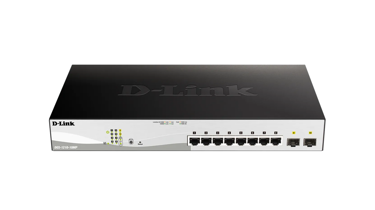 D-LINK 8-ports 10/100/1000Base-T PoE Smart Switch plus 2 SFP ports - 130W PoE budget