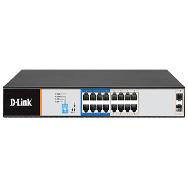 16 PoE 10/100/1000 ports + 2 Gigabit SFP ports Long Range Smart Switch 150W total POE budget; Max Distance 250m