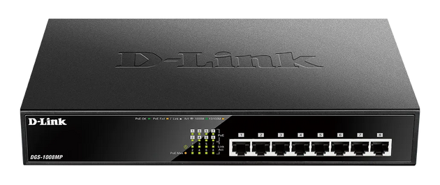 D-Link 8-Ports 10/100/1000Mbps Unmanaged Gigabit POE Switch (Metal Case; 8 x POE ports)