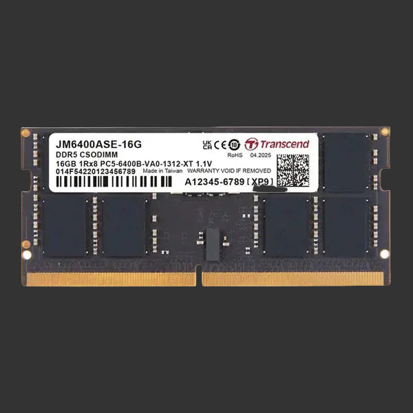 TRANSCEND JET MEMORY 16GB DDR5-6400 Unbuffered NOTEBOOK SO-DIMM 1RX8 CL52 (2Gx8)x8 1.1V