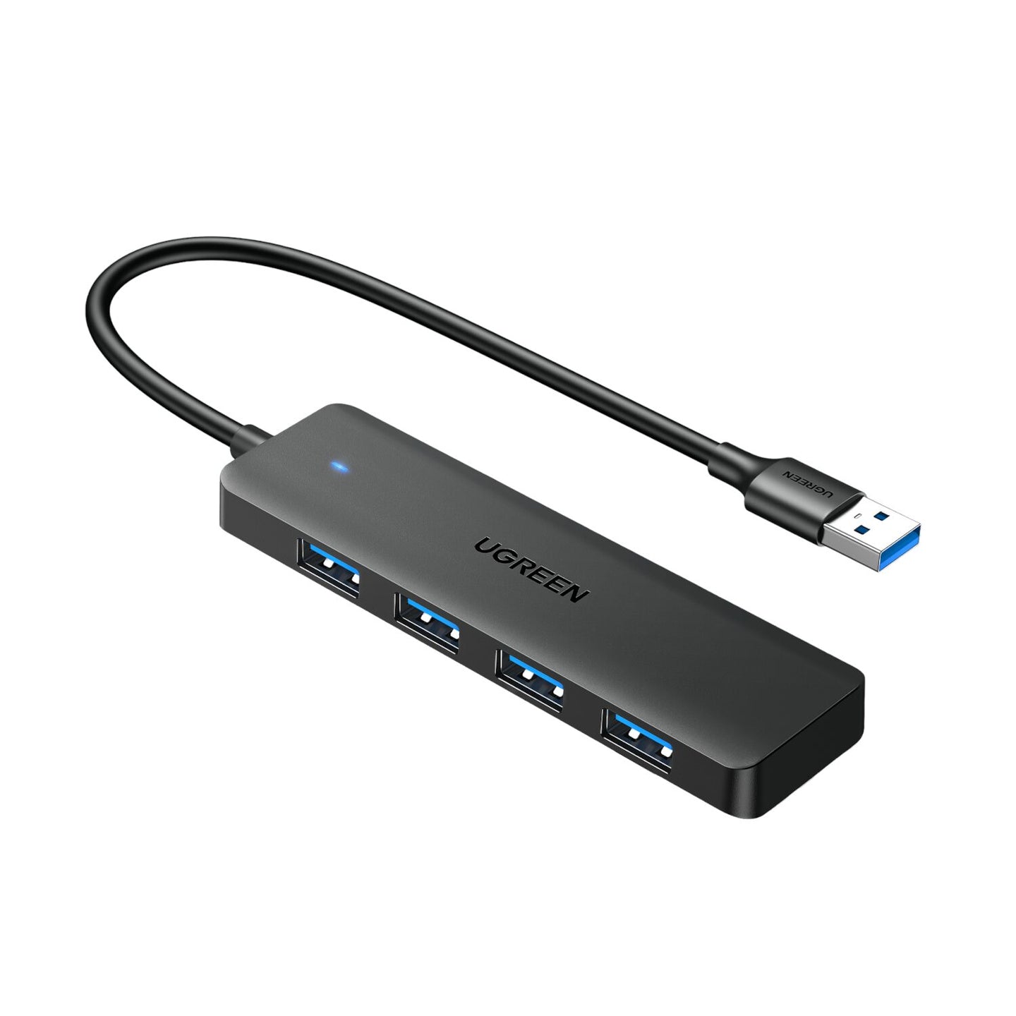 The UGREEN 4-in-1 USB 3.0 Hub is the perfect solution for expanding your connectivity options. Designed for professionals, students, and tech enthusiasts, this compact and portable hub connects multiple USB peripherals to your laptop, tablet and other USB-supported devices. A built-in OTG function chip provides seamless plug-and-play compatibility, ensuring effortless connectivity for devices such as flash drives, keyboards, mice, external hard drives, and more. Offering high-speed data transfer rates of up to 5Gbps, this hub significantly reduces wait times when transferring large files. Housed in a sleek ABS case with metallic paint, the UGREEN 4-in-1 Hub is stylish and durable. Its ultra-compact design and 15cm cable ensure hassle-free portability, making it an excellent addition to any workspace or travel kit.