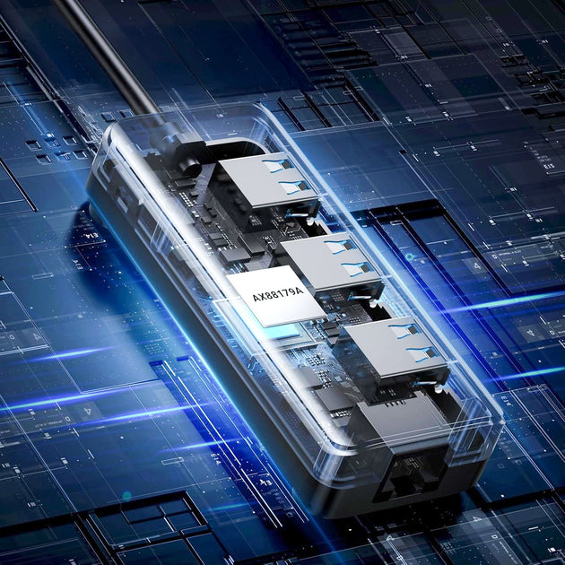 UGreen USB Type-A Male to Ethernet Adapter with 3-Port USB Hub – Black