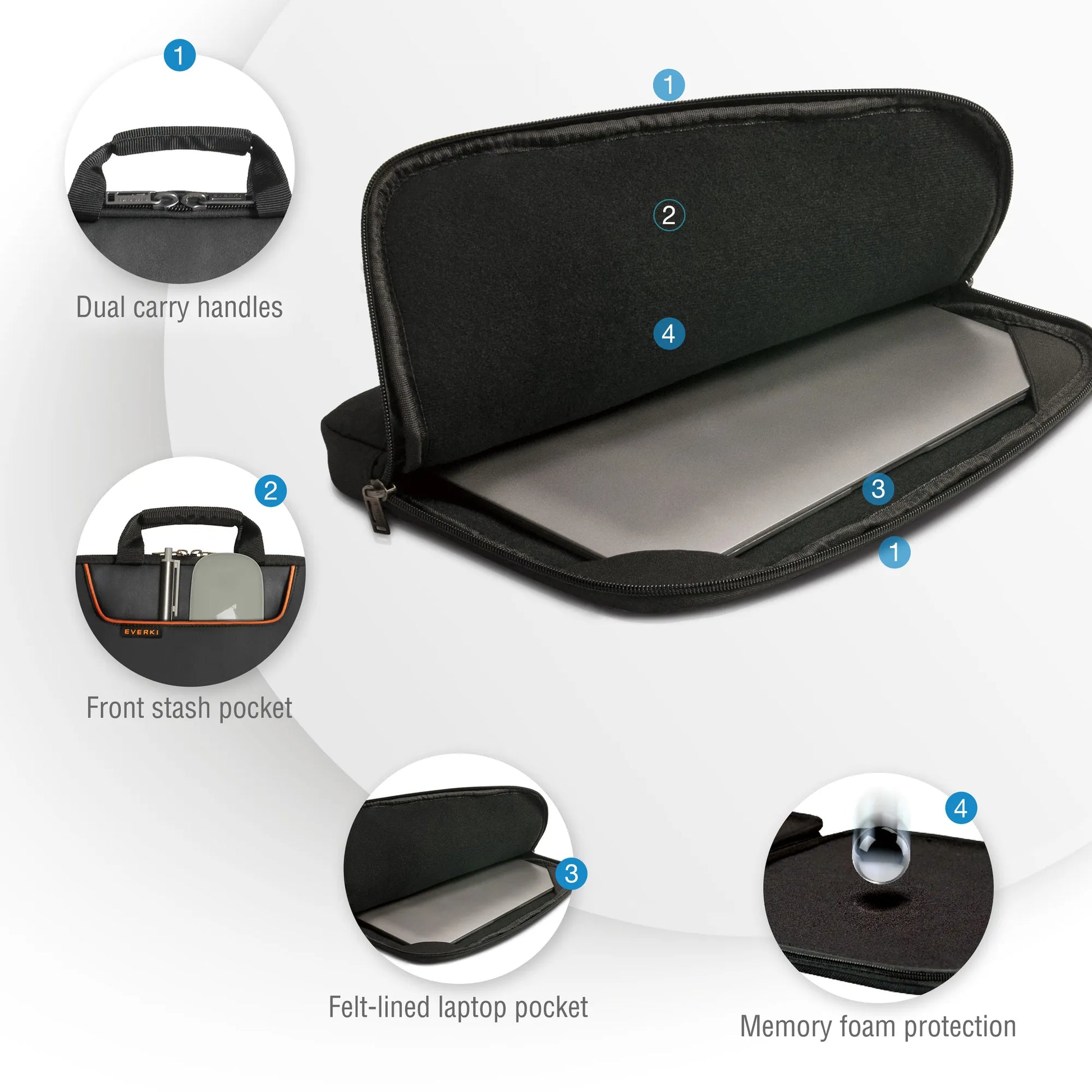 EVERKI EKF808S11B 808-11 11.6'' LAPTOP SLEEVE WITH MEMORY FOAM